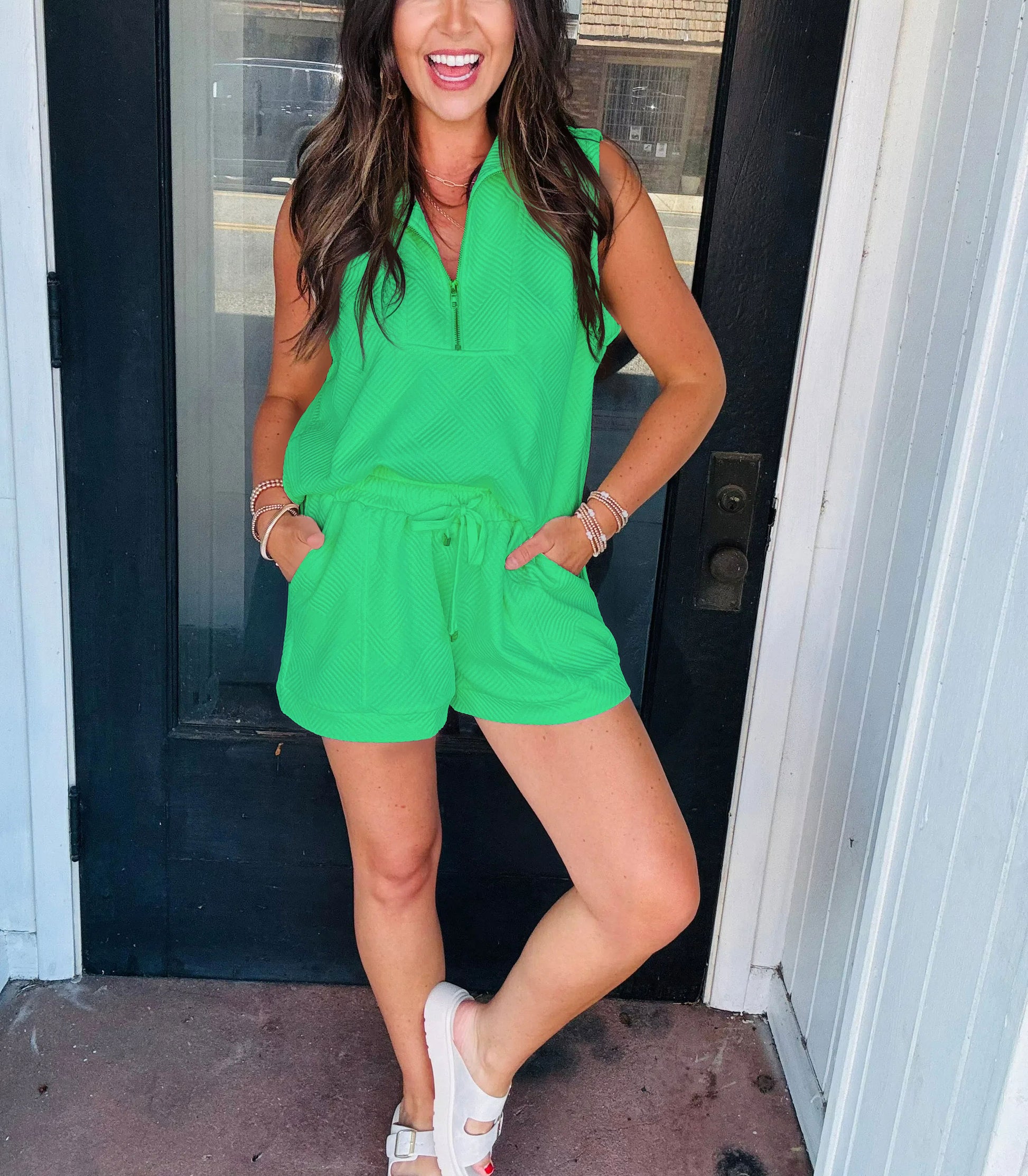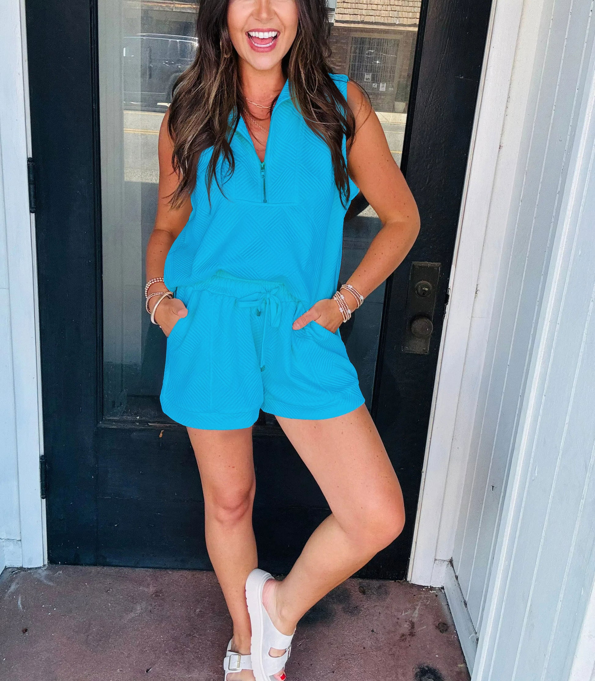2024 Women's Solid Textured Zipper Shorts Set(Buy 2 Free Shipping)