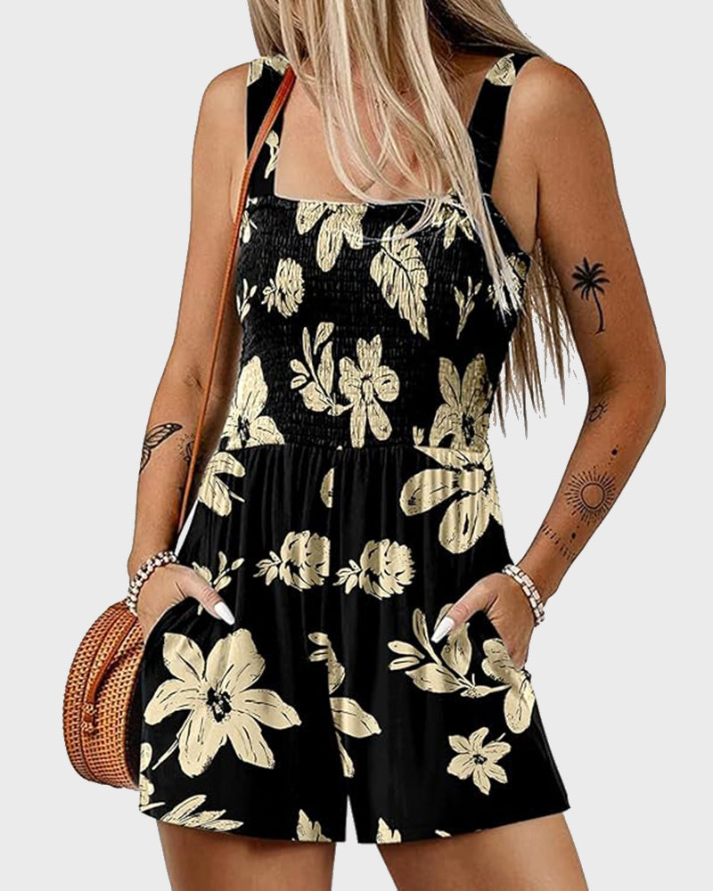 2025 Summer Casual Smocked Beach Vacation Rompers