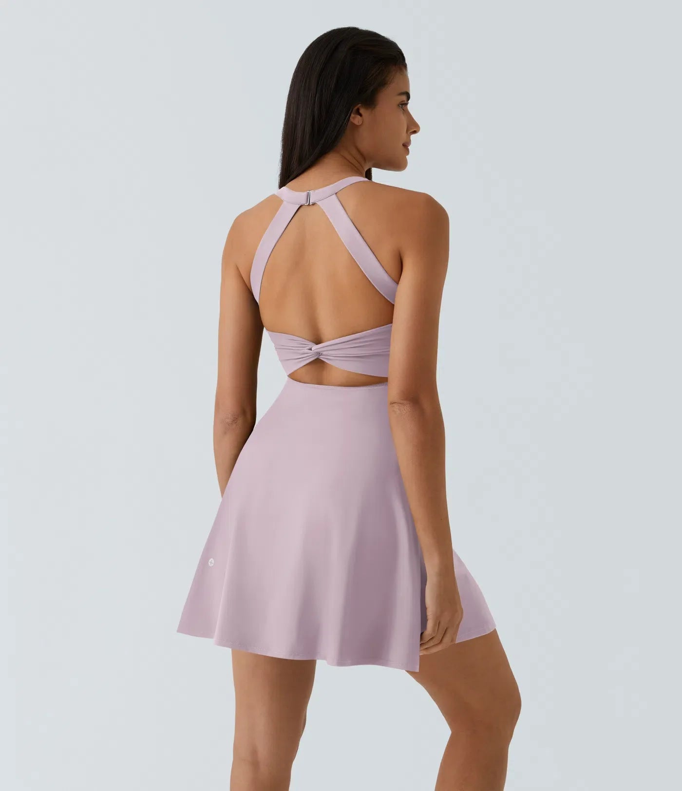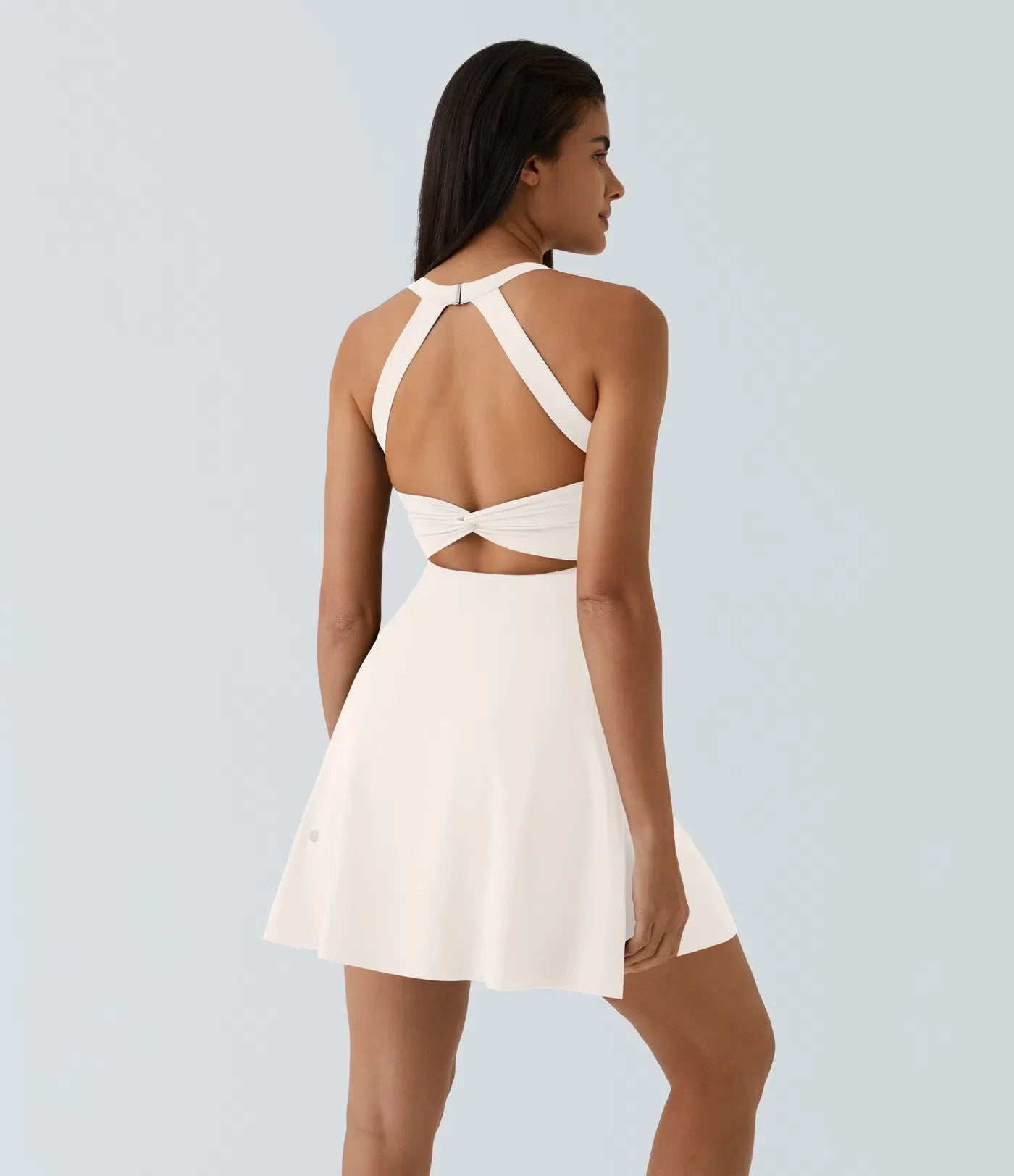 Be ready to set trends with this cut out twisted tennis dress with built in shorts and bras