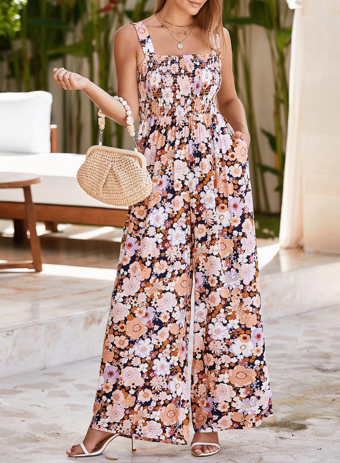 Design Details: With the elastic smocked bust designs, these rompers for women can be more comfortable and fitted. Its floral print enhances femininity, while two side pockets and high waistband??offer practicality.